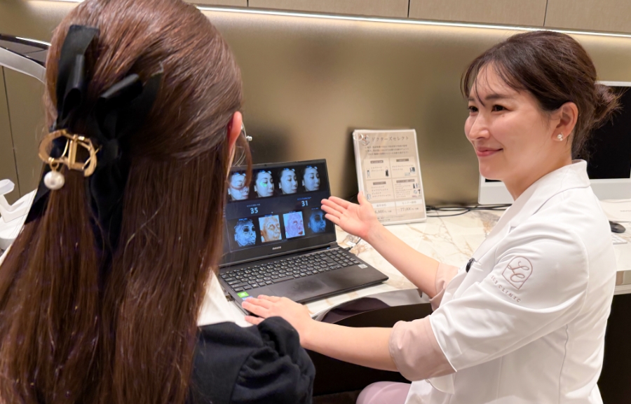 毎回2施術+VISIAを用いた画像解析により、シミ・毛穴・赤み・シワなどを可視化。データに基づき経験豊富な医師が最適な施術を 選択します。