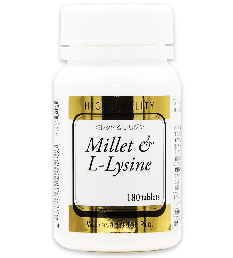 - 特定のキビ品種を原料としており、キビは昔から日本でも五穀の中の1つとして食されていて栄養バランスの良い食品です。 ミレットエキスには、女性のボリュームある毎日を応援する栄養素であるシスチン、ケイ素、ローズマリー酸などが豊富に含まれていて、ヨーロッパでは古くから愛用されています。本製品はミレットエキスを6粒に300mg配合しています。 L-リジンは必須アミノ酸で、体のたんぱく質の構成に必要な成分です。 体の中で作り出すことができないため、食事やサプリメントから補う必要があります。 本製品はL-リジンを6粒に1,500mg配合しています。 できるだけ天然に近い形で飲んでいただくために、サトウキビ、キャッサバ、トウモロコシを起源原料に発酵法を用いて作られたL-リジン原料を使用しています。 安心して毎日お飲みいただけるように、安全性や品質が証明された国内のGMP認定工場で製造しています。 GMP認定工場とは、製造、品質、衛生について専門性を有する第三者の外部機関による厳密なチェックを受けている健康補助食品GMPに認定された工場です。
