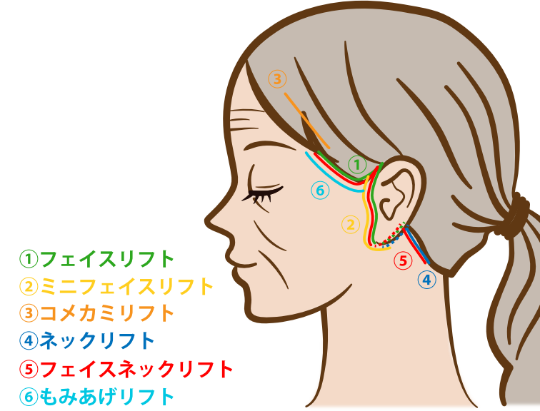 当院では、顔全体のフェイスリフトだけでなく、部分切開リフト(ミニ切開リフト)も提供しています。