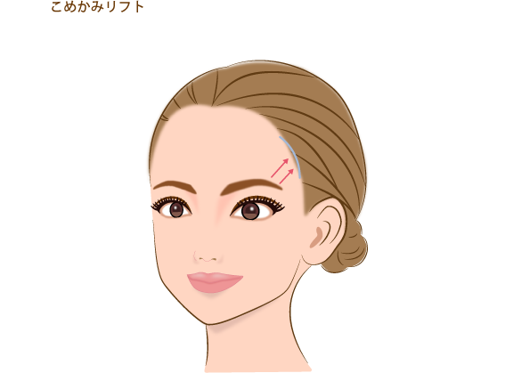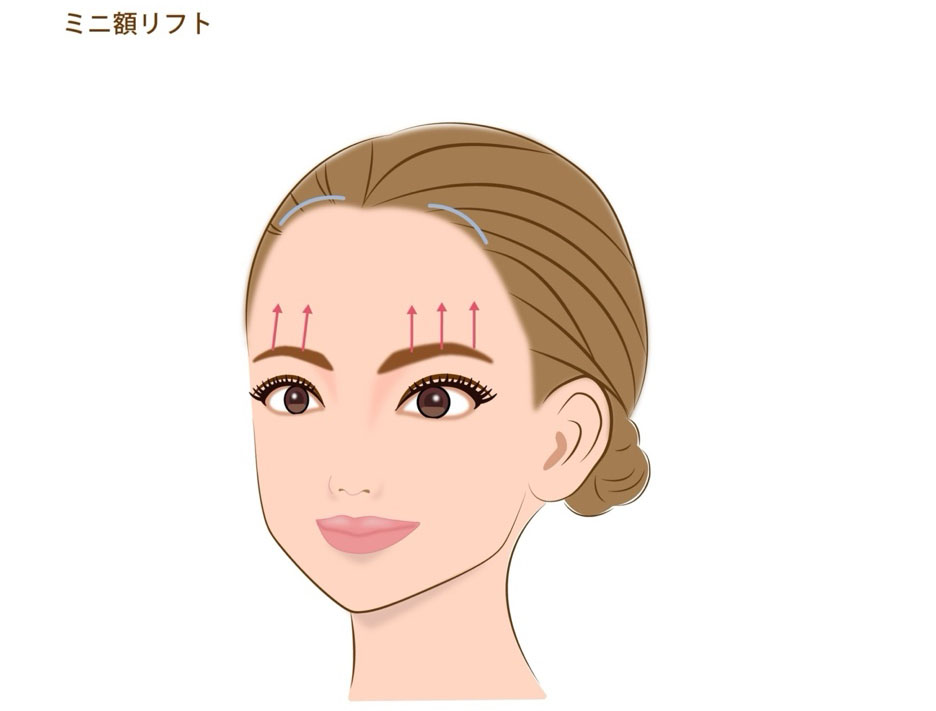 ミニ額リフトとは、髪の毛の生え際または有毛部に沿って横幅2~5cm程度を切開し、額の皮膚を上に引き上げる施術です。